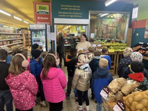 Zur Wochenmitte besuchten alle Kombiklassen den Biomarkt in Salzweg. Bei einer spannenden Führung erfuhren die Kinder, woher die Produkte stammen und was sie besonders nachhaltig macht. Sie durften verschiedene Lebensmittel kosten, selbst Mehl mahlen und zum Schluss sogar kleine Einkäufe tätigen – ein praxisnahes Erlebnis rund um bewusste Ernährung und nachhaltigen Konsum.