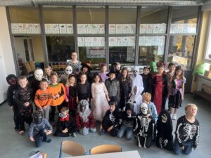 Am letzten Schultag vor der Ferien durften sich die Kinder der Kombiklassen 1/2 für eine Schulstunde zu kleinen Gruselwesen für Halloween verkleiden.