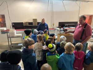 Zum Auftakt der Woche der Nachhaltigkeit besuchten alle drei Kombiklassen den Hundswinkler Hof der Familie Weidinger. Die Kinder erhielten eindrucksvolle Einblicke in das Leben auf einem Bauernhof und erfuhren, wie der Weg vom Huhn bis zum Eierverkauf aussieht. Außerdem durfte jedes Kind ein eigenes Käppi gestalten und jede Klasse sogar einen Klassen-Baum pflanzen – ein schönes Symbol für Nachhaltigkeit und Zukunft.